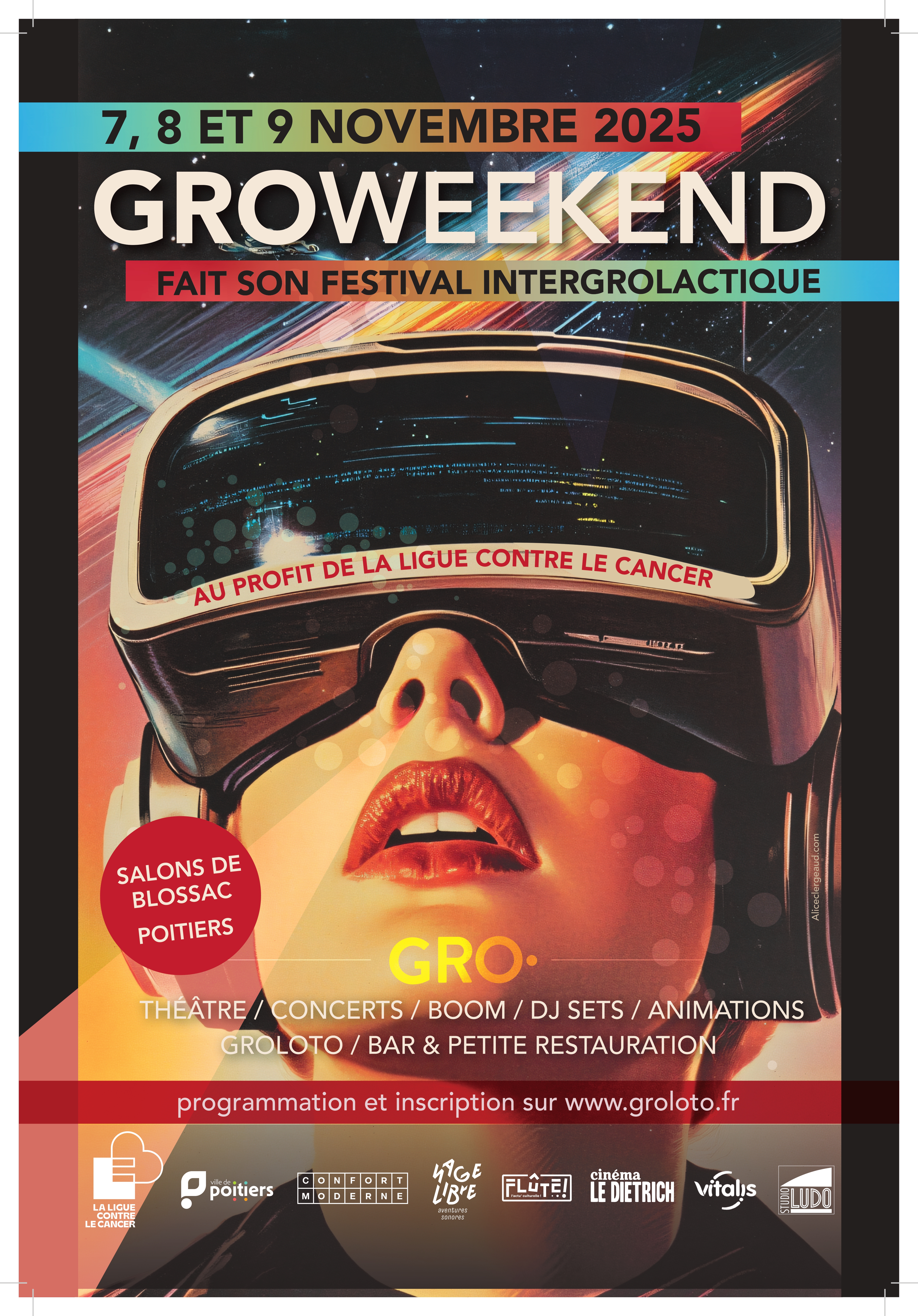 Poitiers concerts et spectacles du 7 au 9 novembre GROWEEKEND INTERGROLACTIQUE AU PROFIT DE LA LIGUE CONTRE LE CANCER Né en 2019, le GROWEEKEND est... En savoir Plus "GROWEEKEND INTERGROLACTIQUE"