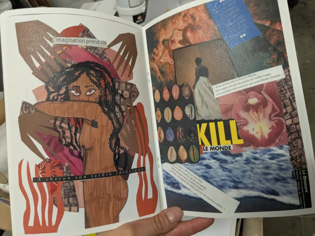 De la diffusion d’un film de matrimoine aux stands de sensibilisation qui ont animé le campus, jusqu’aux rencontres sur les reculs des droits des femmes et des minorités de genre, chacun·e a pu apprendre et échanger autour de nombreuses questions. Groupes de discussions et ateliers ont permis de créer des protections menstruelles pour des personnes dans le besoin, ou de réaliser un fanzine avec l’artiste Épaule Noire.